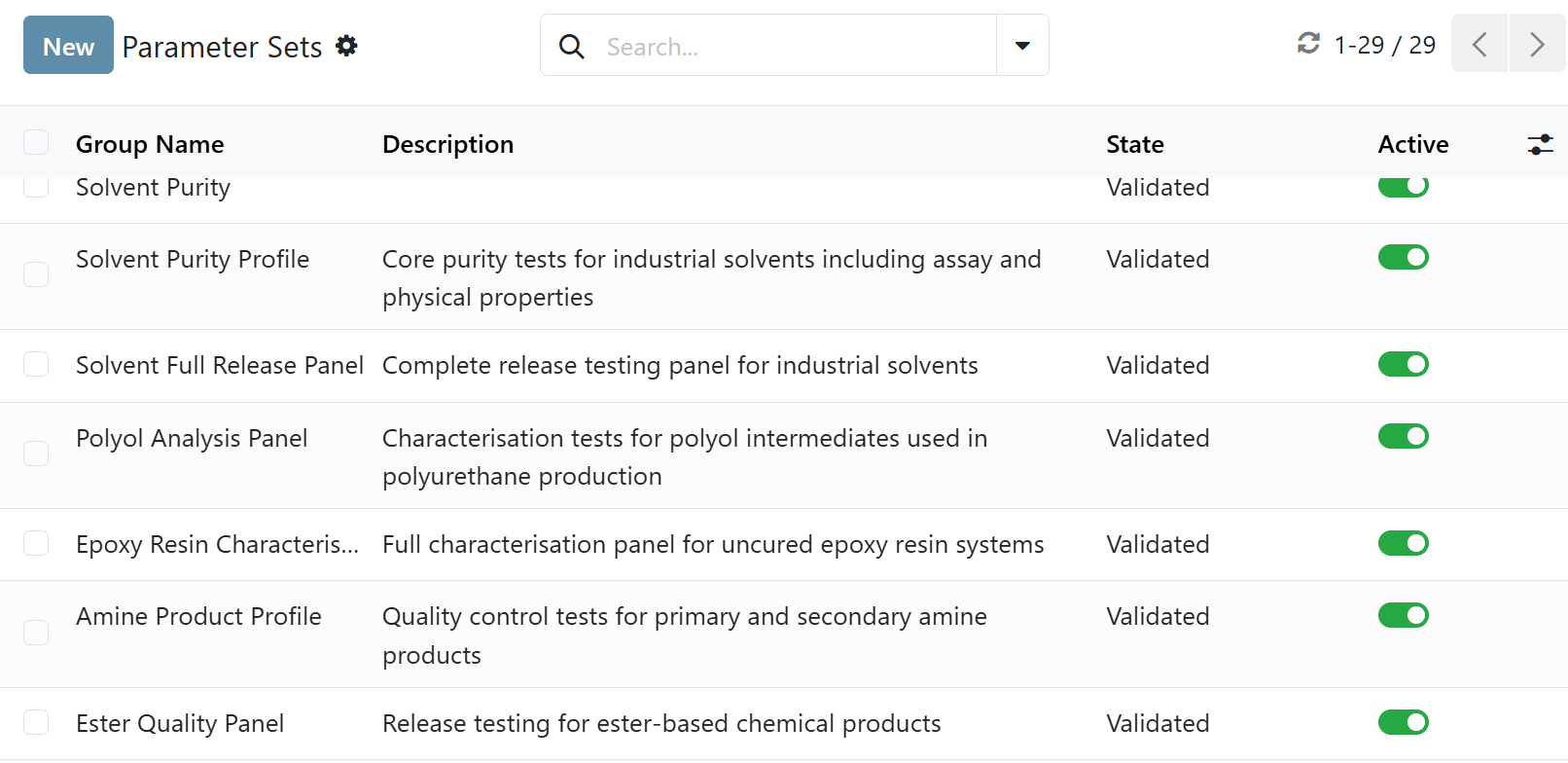 - Configure test methods, detection limits, units and specification ranges for any reagent, compound or matrix.