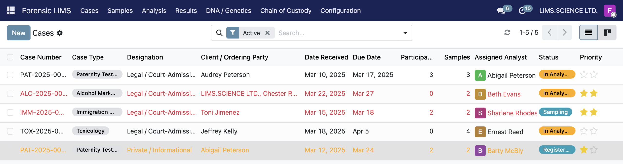 Our forensic LIMS system, powered by Odoo, centralizes evidence tracking, toxicology test workflows, forensic DNA analysis, and QA reporting in one place.