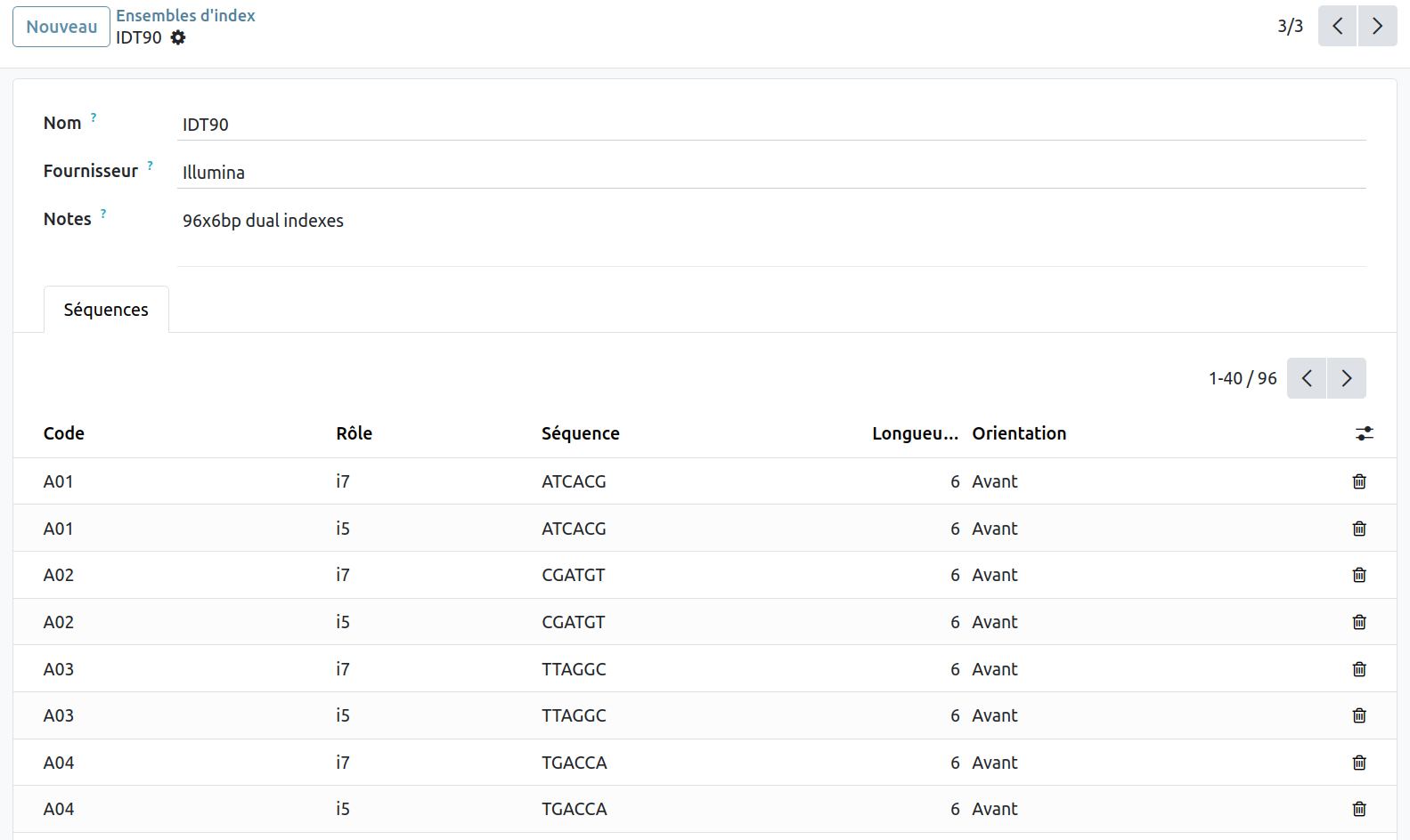 - Configurez protocoles, ensembles d’index et seuils QC pour vos flux NGS.