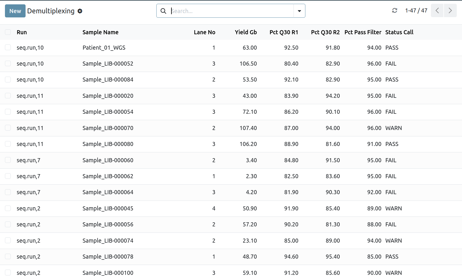 - Track samples through library prep, pooling, sequencing runs, and demultiplexing with complete traceability