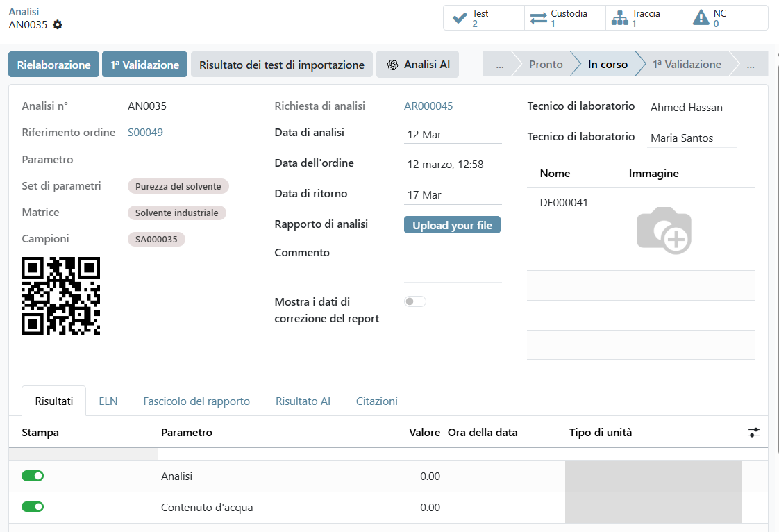 - Gestite approvazioni e rifiuti con audit trail completi, validazione dei metodi e monitoraggio delle azioni correttive.