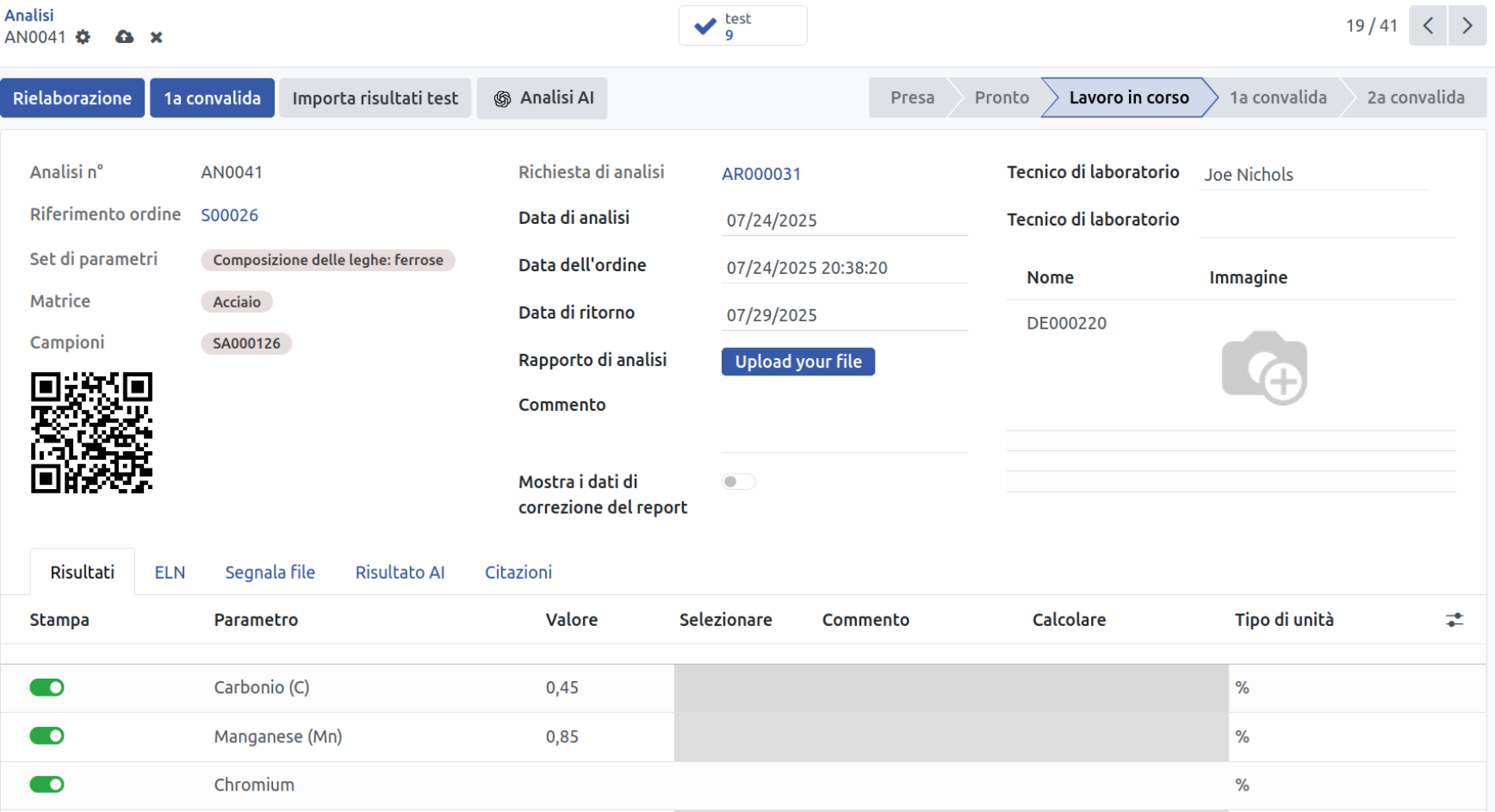 - Configurare metodi di prova, limiti di grado e unità di riferimento per analisi dei minerali, prove elementari e flussi di lavoro metallurgici.