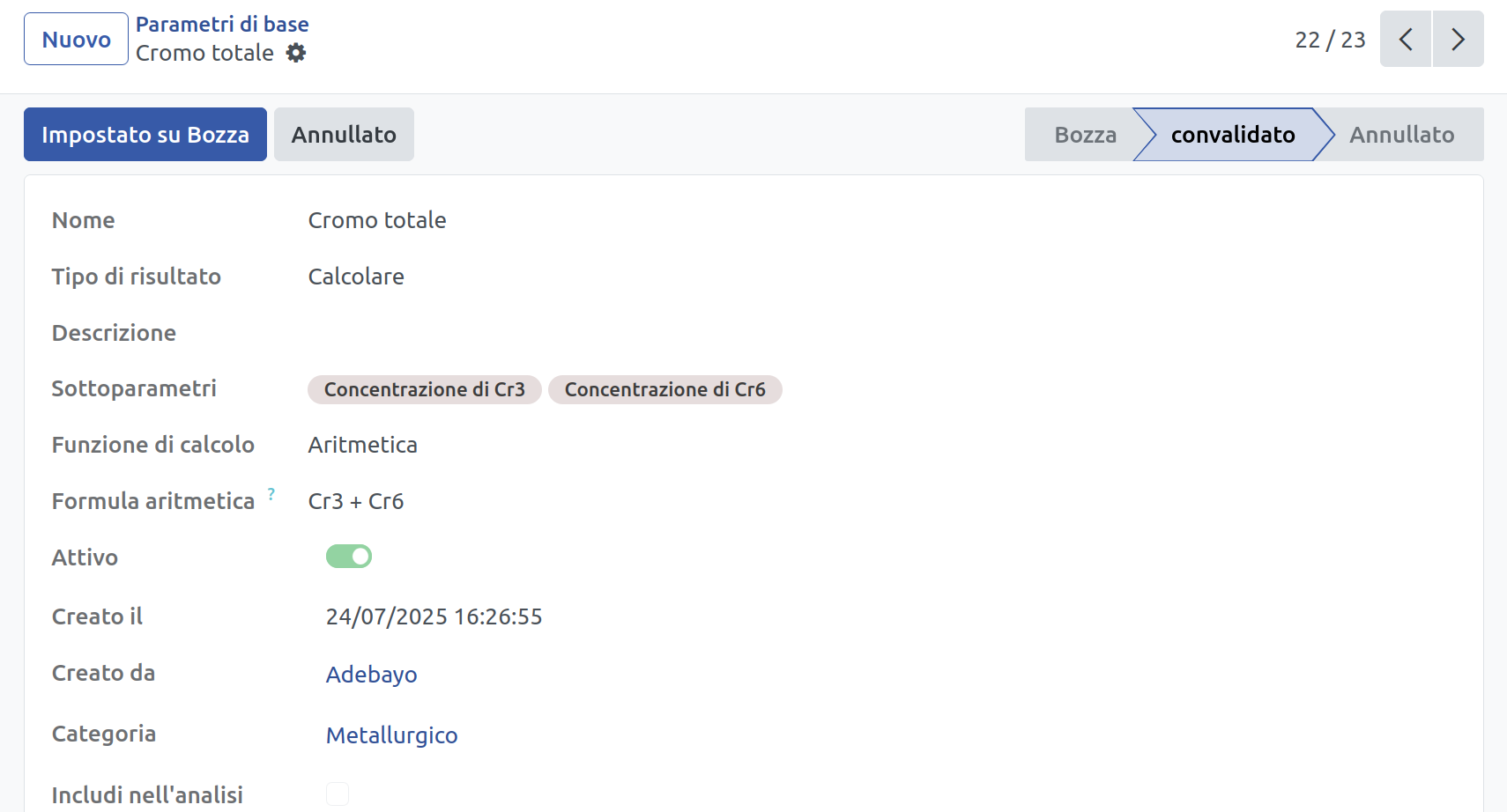 Software di gestione laboratori minerari basato su Odoo