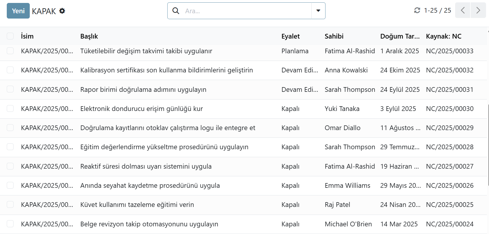 Otomatik Düzeltici ve Önleyici Faaliyetler (CAPA)